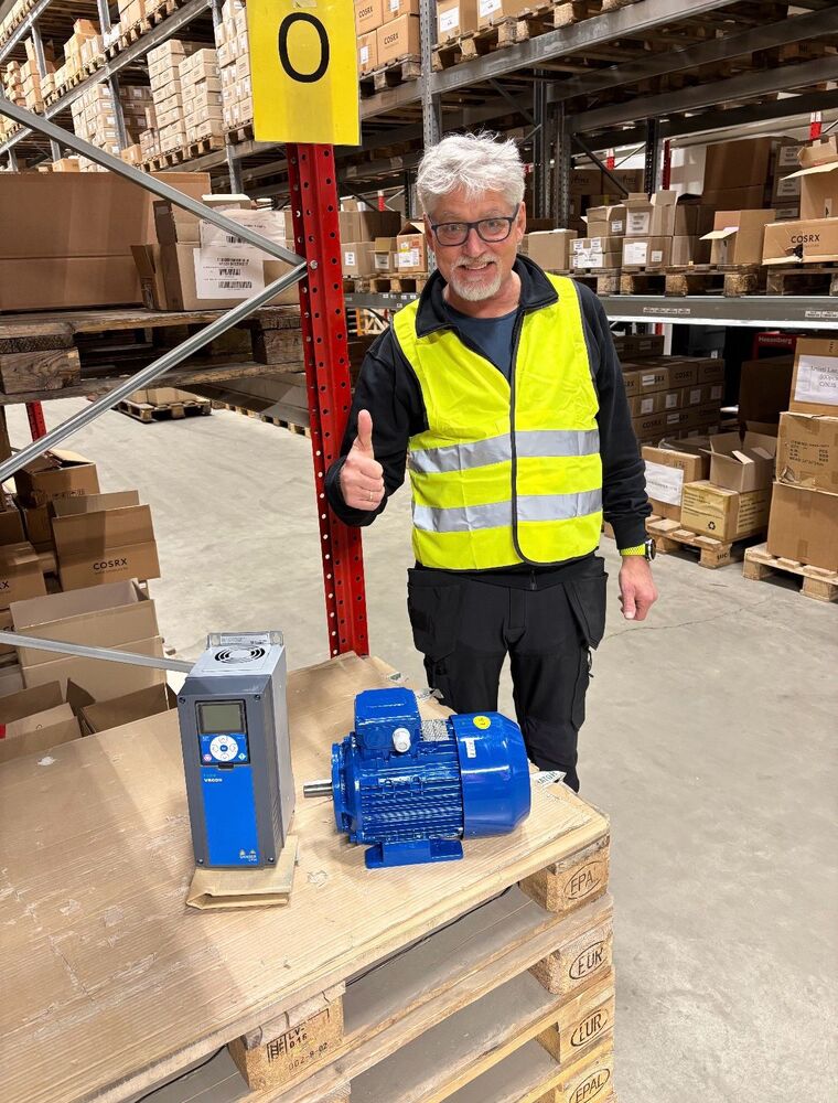 Lageret omfatter standardmotorer fra 0,25 kW og er primært beregnet for levering, med mulighet for henting ved behov.
